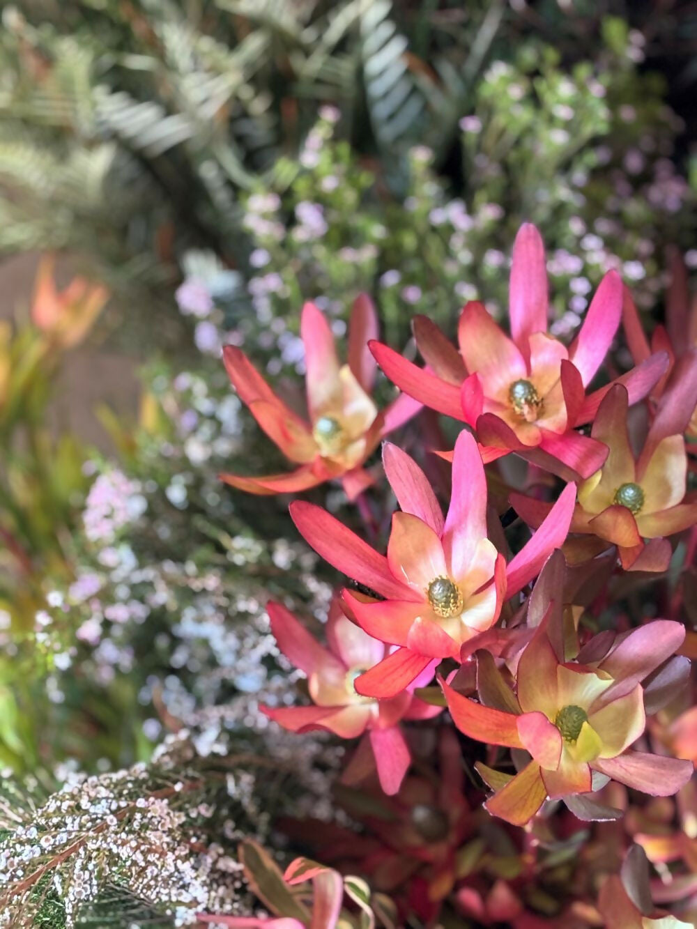 A curated mix of 12 bunches of fresh foliage, hand-picked to showcase the best of what’s growing in the garden. Each bunch includes a generous 10 stems, giving you plenty to work with. While the exact contents change with the seasons, you might find varieties like Leptospermum ‘Coppersheen’, Nandina, Eucalyptus, Grevillea, Manuka, Leucospermum — and a few surprise stems we think you'll love.